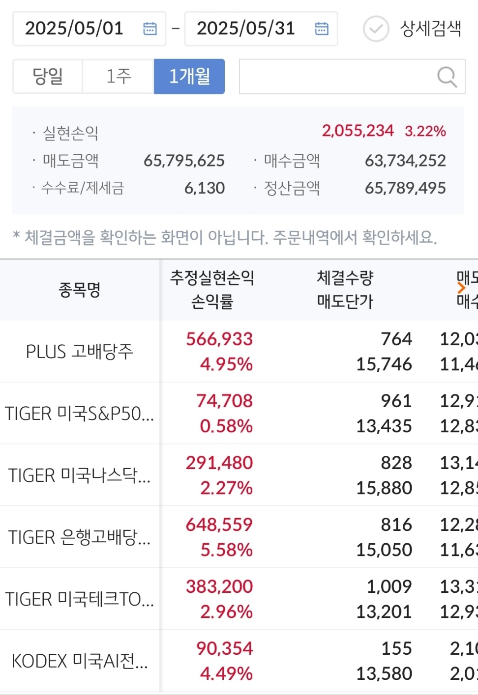 📈 2025년 5월 투자 현황 (총 2,721,055원 수익 실현)