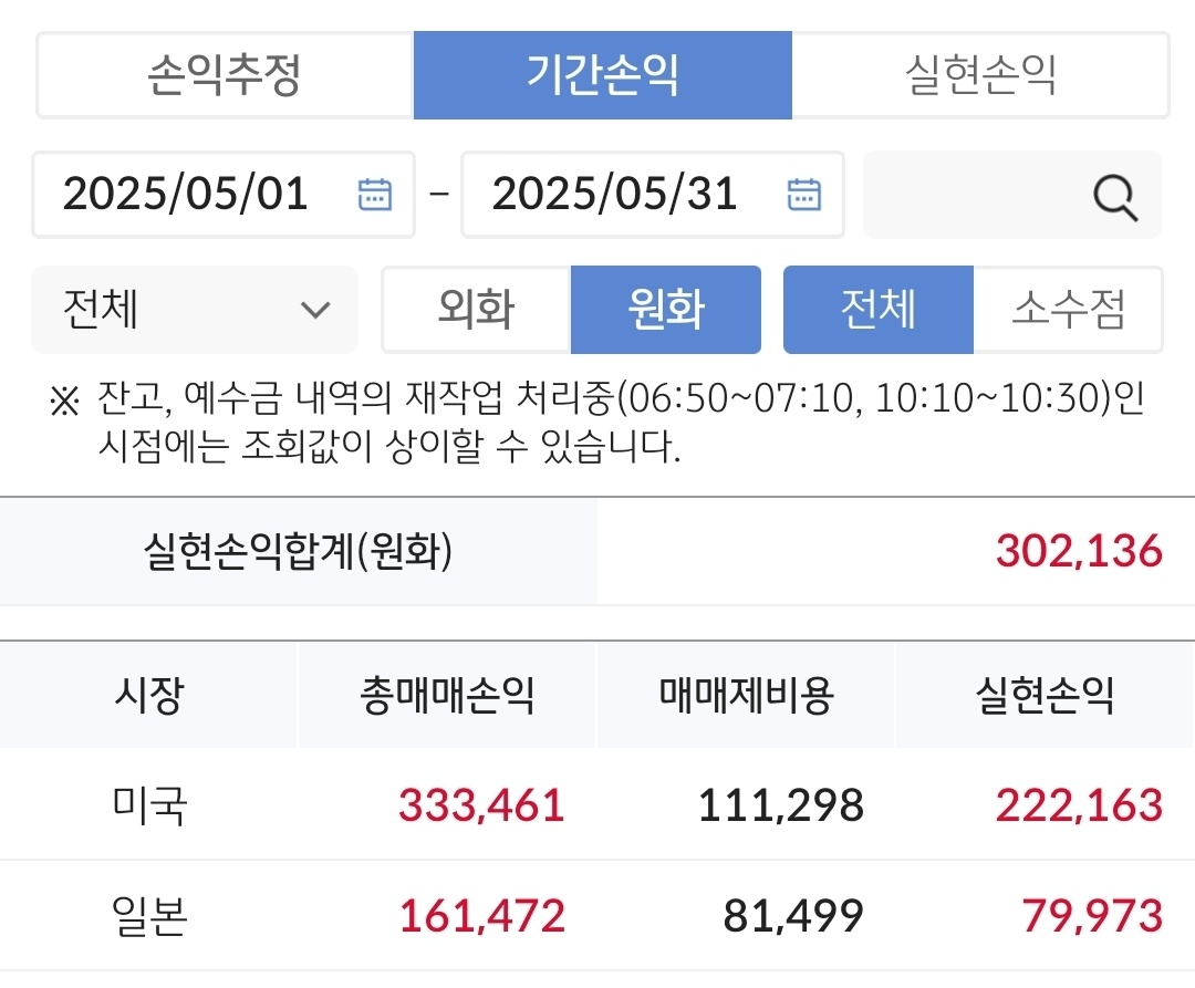 - 총 수익 : 2,055,234원 (수수료 6,130원 차감)