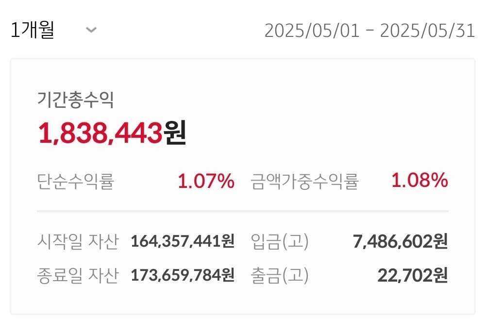 5월은 시장이 회복세를 보이면서 분할 매수의 성과를 확인할 수 있었던 시기였습니다.